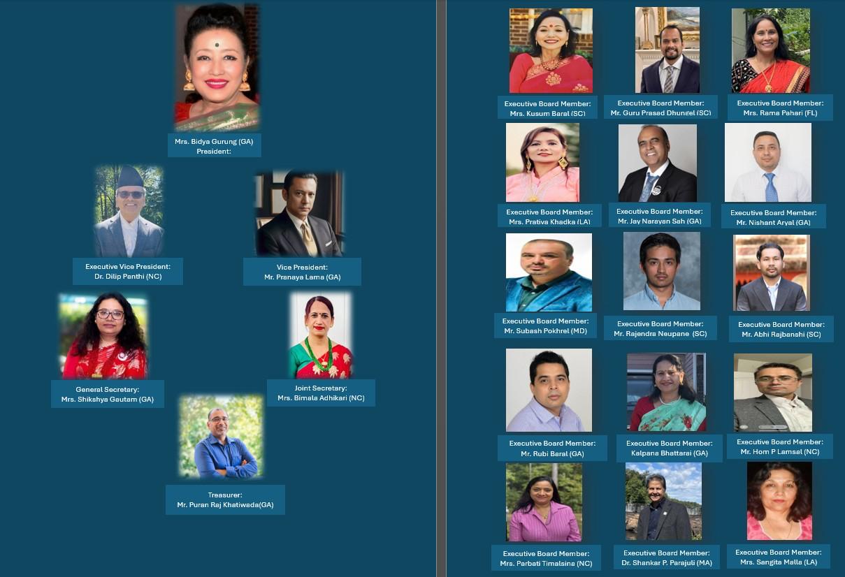 We are thrilled to announce the newly elected Executive Board of the Nepalese Association in Southeast America (NASeA) for the term 2025–2027! This dynamic team of passionate leaders from across the Southeast region is committed to serving our community with dedication, unity, and vision.